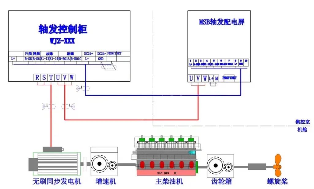 这是恒频恒压系统在船用电源领域的一个新方案,既有轴带发电机的节能效果,又有稳定电压输出,给船上的用电设备实现不间断供电。
