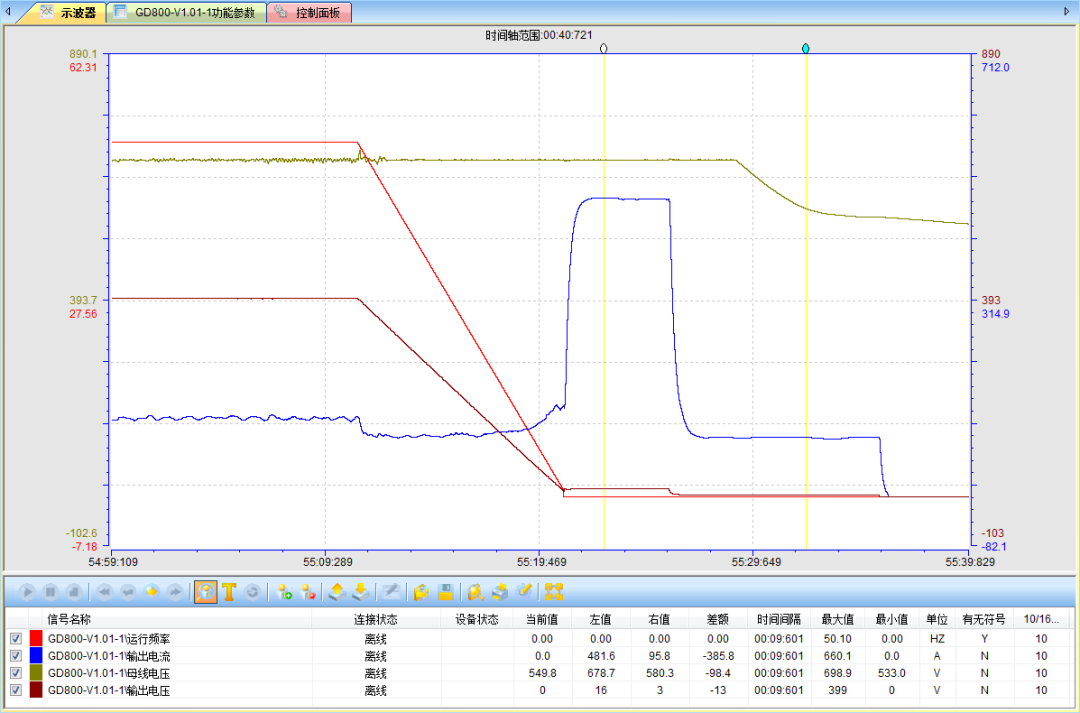 停车波形:停机时增加了直流制动,停机采用安全停机SS1指令,在100%转矩制动后,逆变输出持续10s转矩保持。在100%流量4000t/h时停机稳定,不存在下溜情况。