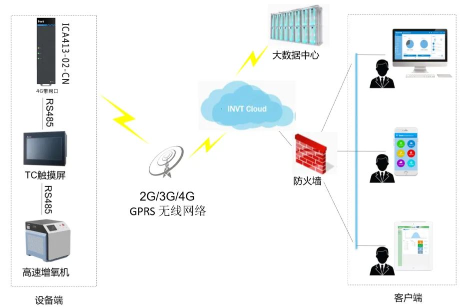 由此英威腾推出GD300-01A-EH高速电机专用变频+TC系列触摸屏+ICA413-02-CN物联网网关的系统解决方案,该方案具有高效节能,功能先进等优点。