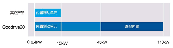 37KW(含)以下标配内置制动单元;45KW~110KW,选配内置制动单元;